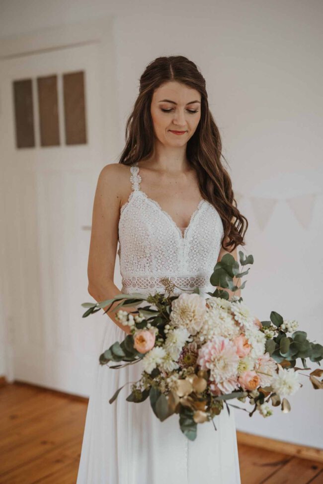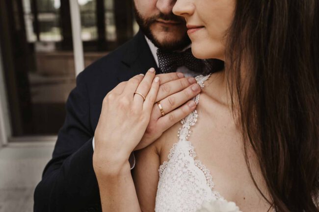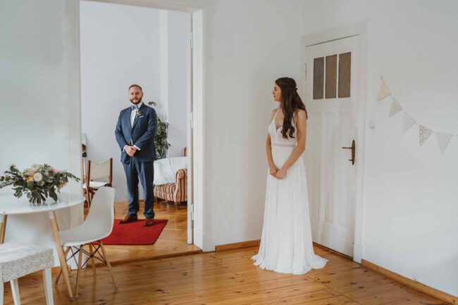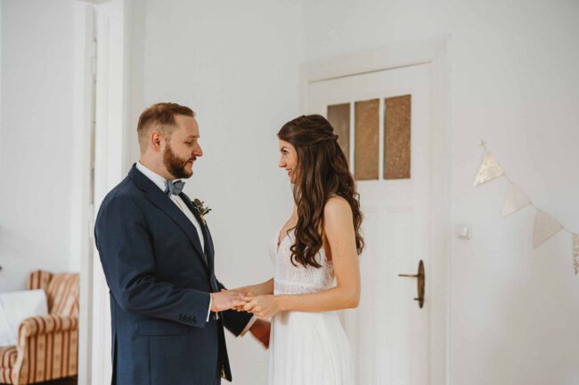 Morgens trafen wir uns bei der Trauzeugin, wo die Braut ihr wunderschönes Styling erhielt. Erster Höhepunkt des Tages war der First Look. Nicht nur zwischen dem Brautpaar, sondern auch zwischen dem Bräutigam und seiner Mutter und der Braut und ihrem Vater. Da blieb kein Auge trocken und es konnte nur ein wunderschöner Tag werden.