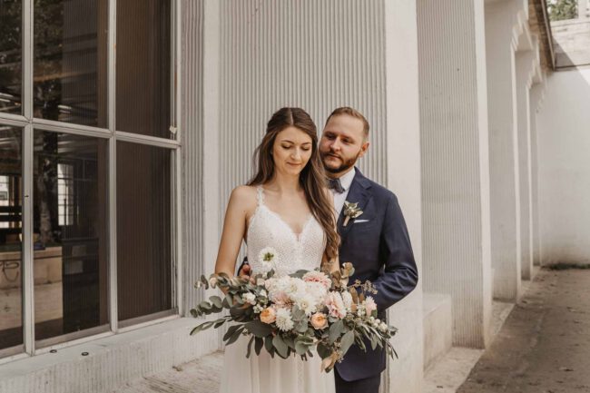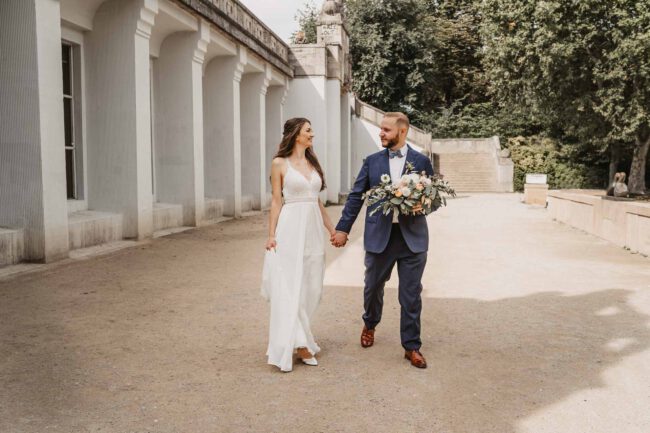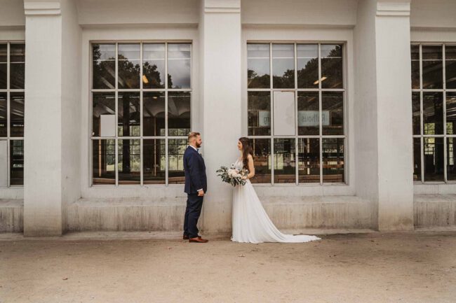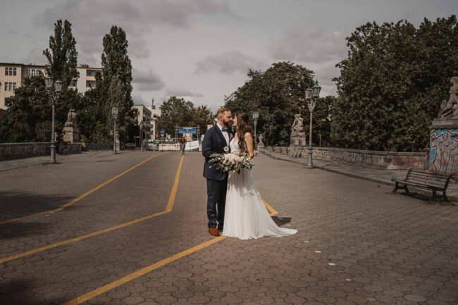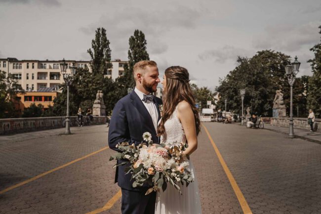 Nach der Trauung warteten Familie und Freunde vor dem Standesamt und bereiteten im gegenüberliegendem Park einen Sektempfang vor. Es entstanden erste Familienbilder und auch ein kleines Brautpaarshooting hatten wir bereits, denn genau auf der naheliegenden Brücke hat sich das Brautpaar das erste Mal geküsst.