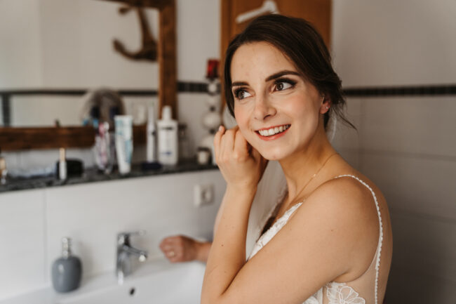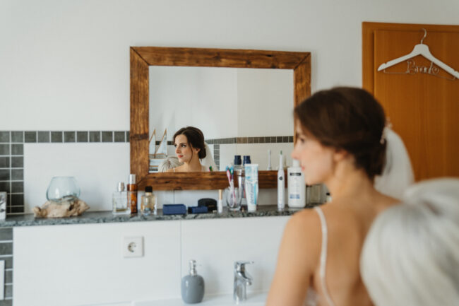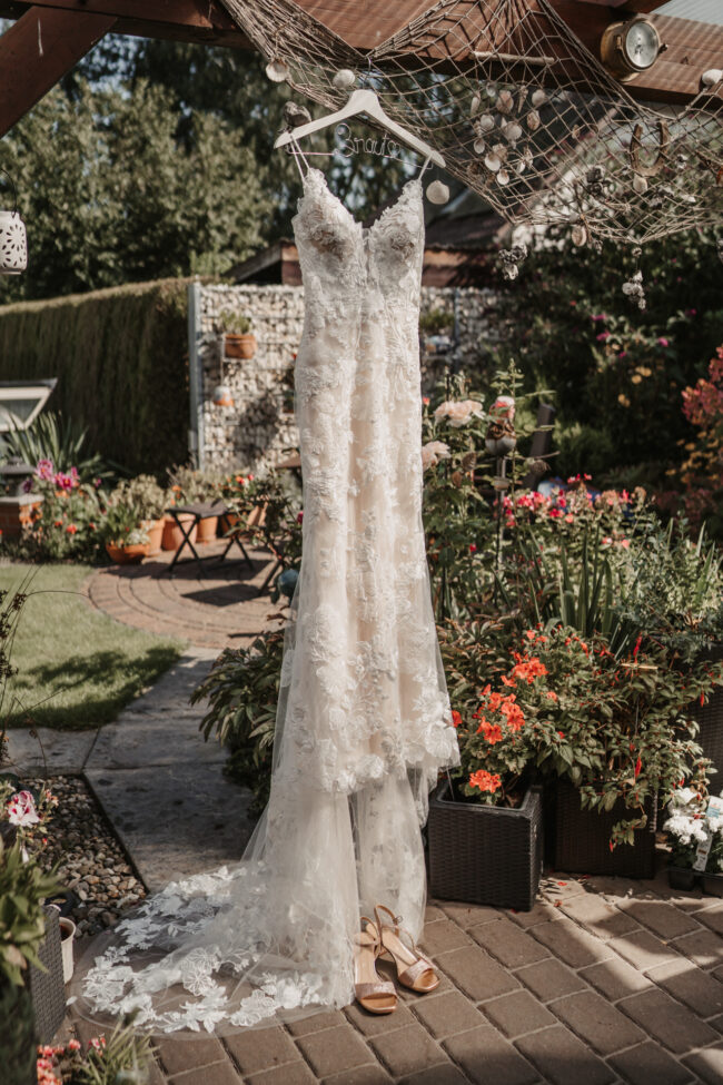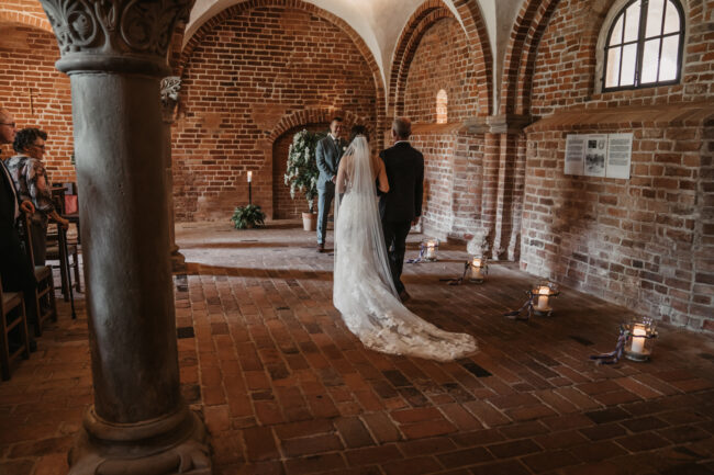 Start war bei den Eltern der Braut. Hier machte sich Dorina mit ihren Mädels fertig. Kurz bevor es zum Kloster Jerichow ging, hatten Vater und Braut ihren ersten großen Moment. Die Aufregung war förmlich fühlbar und als es dann auch noch geschriebene persönliche Worte für den Papa gab, blieb kein Auge mehr trocken.