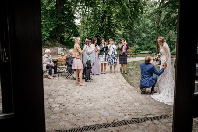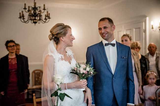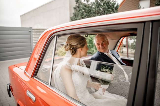 So herzlich und liebevoll zog es sich durch den ganzen Tag. Im alten Lada bracht der Brautvater seine Tochter zum Standesamt. Dort wartete schon ganz aufgeregt der Bräutigam. Die Trauung war sehr schön von der Standesbeamtin gesprochen und hin und wieder durfte auch ein wenig geschmunzelt werden.