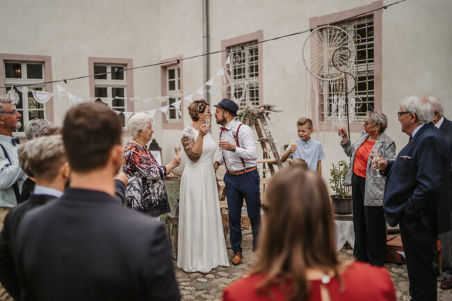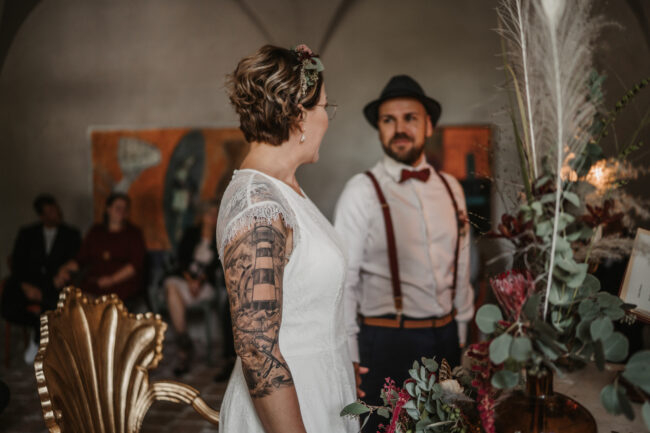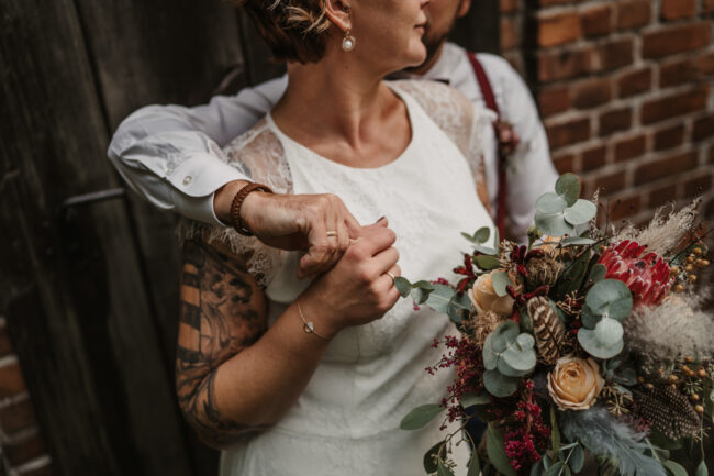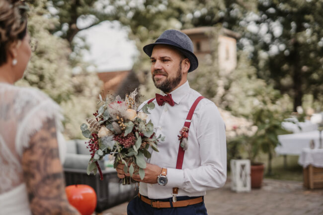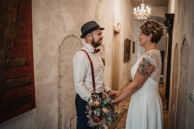 Unser gemeinsamer Tag begann mit dem Getting Ready von Braut und Bräutigam. Beim First Look des Brautpaares gab es dann die ersten Tränen vor Rührung. Die standesamtliche Trauung hat den Emotionen in nichts nachgestanden und der wundervolle Tag nahm somit weiter seinen Lauf. Alles war mit soviel Liebe zum Detail dekoriert, dass man sich gar nicht satt sehen konnte.