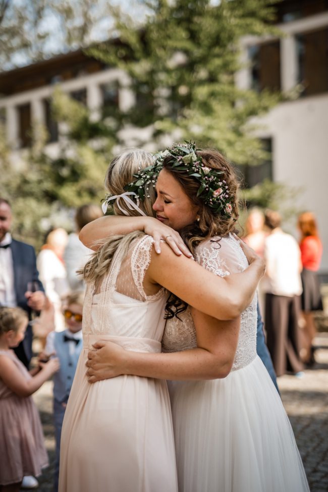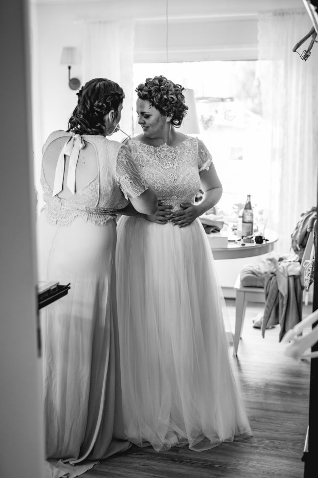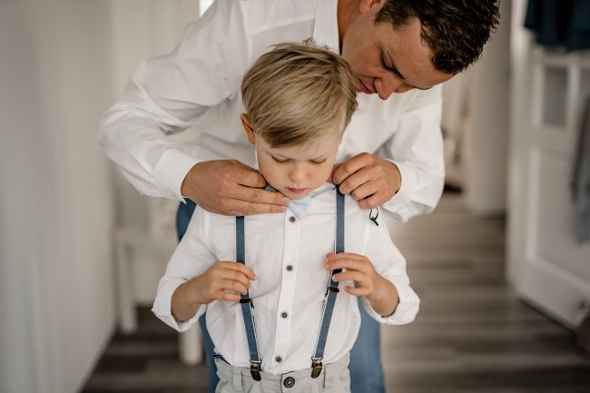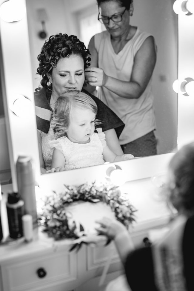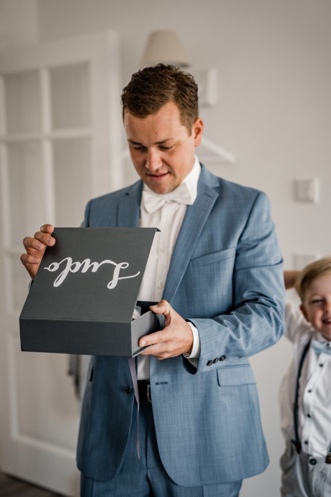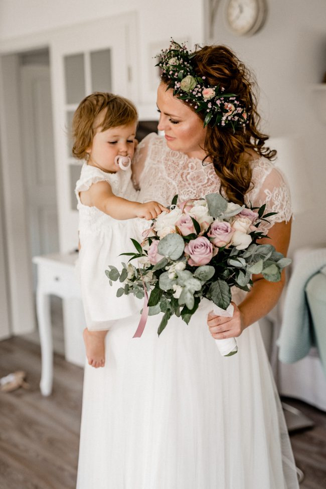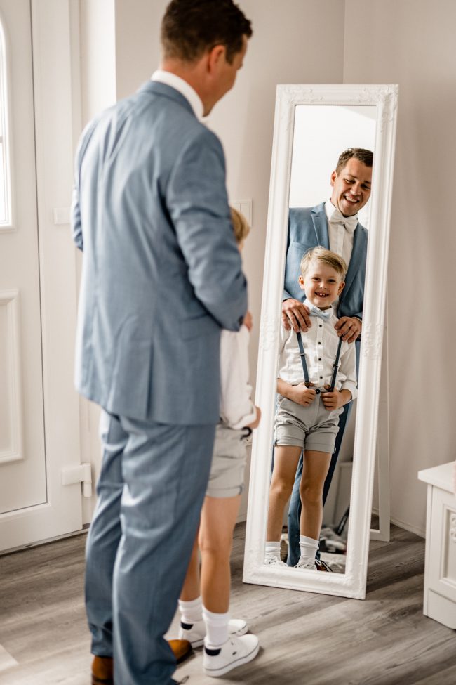 Begonnen hat der Tag für mich mit dem Getting Ready vom Bräutigam und dem Sohnemann. Man hat hier schon die Anspannung gespürt. Erste kleine Überraschungen und Emotionen durfte ich fotografieren. Anschliessend ging es zur Braut und der kleinen Maus. Ach Gott, was eine Aufregung. Brautjungfern und die Stylistin waren vor Ort. Dennoch lief alles wie geplant und vor allem im Zeitplan ab. Zuckersüße und emotionale Momente durfte ich auch hier bereits festhalten.