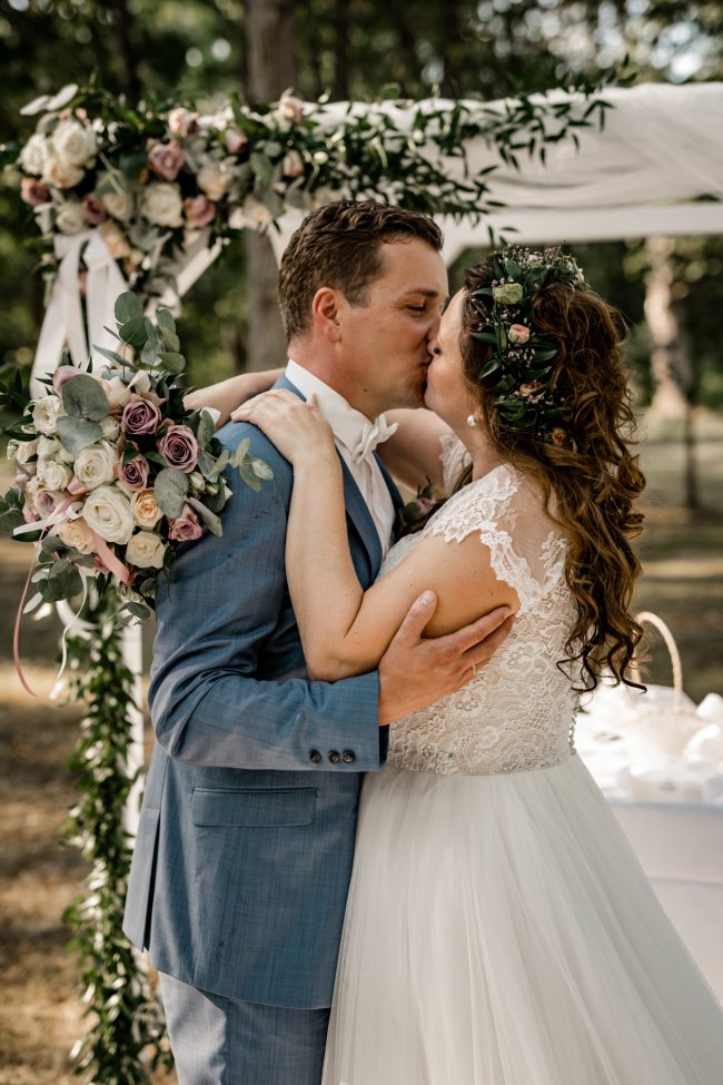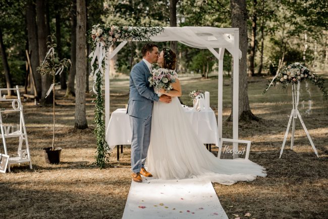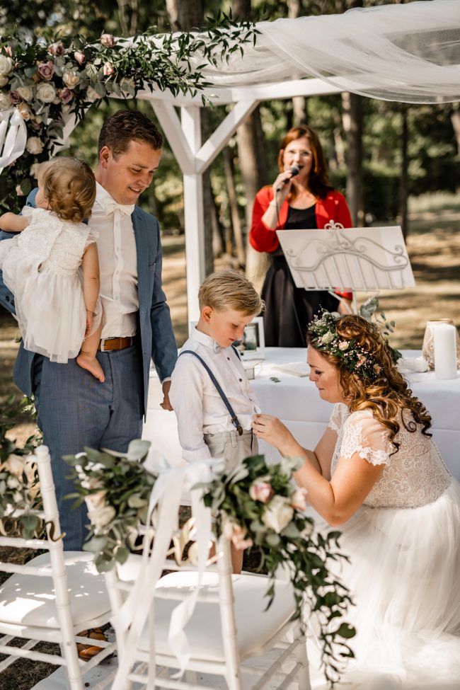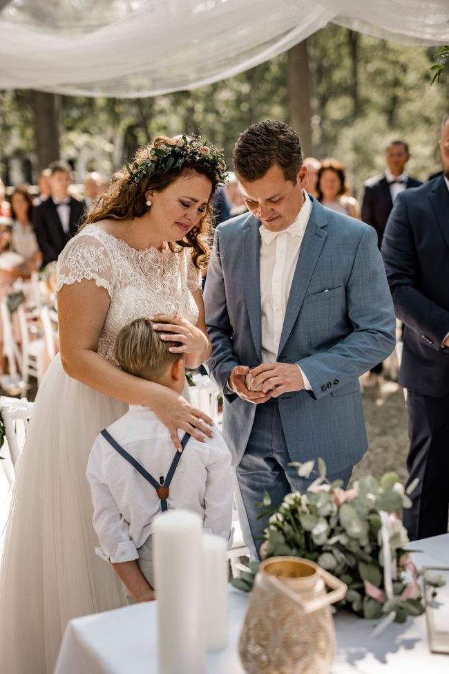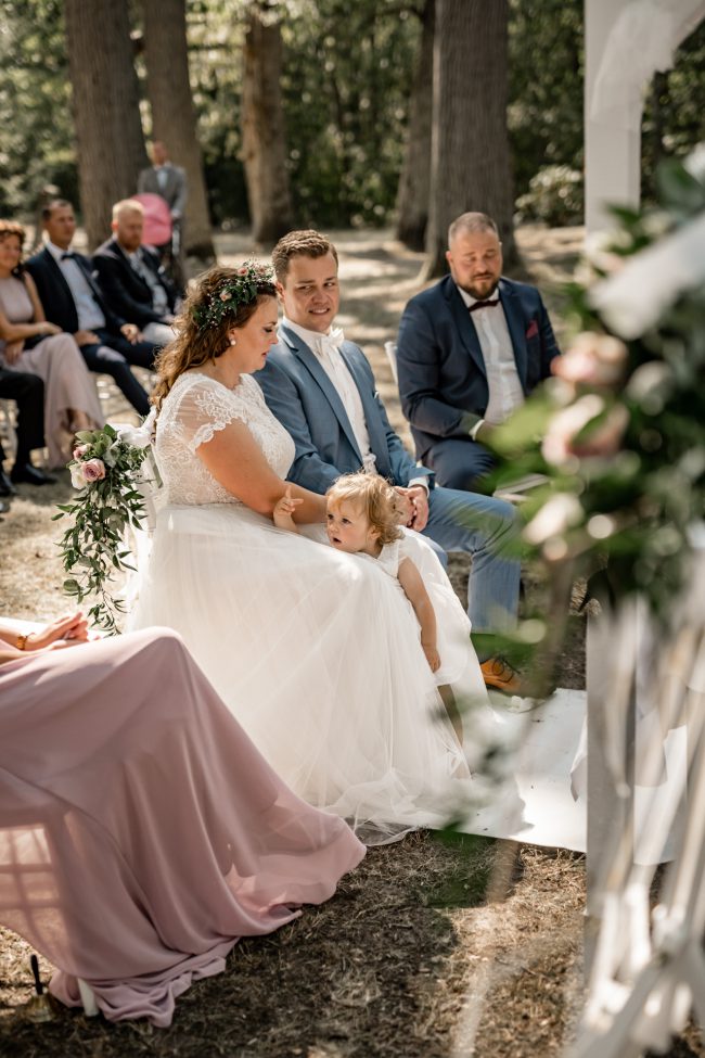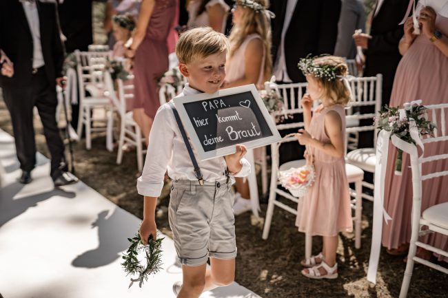 Anschliessend ging es zur Location. Ich war absolut sprachlos, wieviel Mühe man in die Traulocation gesteckt wurde. Das Konzept der Braut ging auf und alle waren begeistert. Man spürte förmlich, dass es gleich ganz viel Tränen geben wird. Tränen der Liebe, der Freude, des Glücks. Und so war es dann auch. Die Braut wurde von ihrem Großvater geführt. Vornweg der stolze Sohnemann. Jeder hielt für einen kurzen Moment den Atem an und hat diese Atmosphäre in sich aufgesogen. Die freie Traurednerin hat uns zugleich mit ihrer Stimme verzaubert.